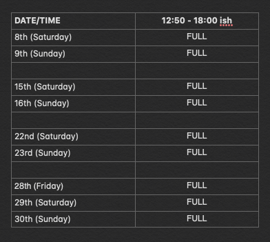 Payment is taken in advance towards the end of June. If you request to cancel, refunds will only be given if the space(s) are filled. Thank you for understanding!